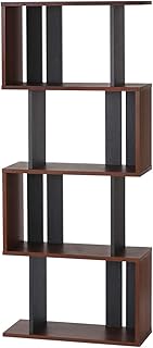 CJMM オープンシェルフラック 4段本棚 おしゃれ 多目的木製ラック ディスプレイラック 収納棚 飾り棚 食器棚スチールシェルフ 木目 間仕切り リビング収納 高さ 茶色) 本棚 ディスプレイラック 収納 棚 木製 木目 間仕切り リビング収納 飾り棚 (ウォルナット 高さ約132cm 茶色
