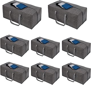VENO Heavy Duty Extra Large Storage Bag, Moving Bag Tote, Clothes Organizer, For Blanket, Comforter, Bedroom closet, Dorm Room Essentials, Moving Supplies, Clothes Storage, Water Resistant, Recycled Materials (Dark Gray - Set of 8)