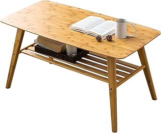 ローテーブル 幅100cm 高さ50cm センターテーブル リビングテーブル 棚付き テーブル 竹製 ナチュラル TC100502