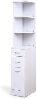 moca company Roundear カウンター下収納 コーナーラック 幅22 高さ80 スリム ラック ホワイト 木目調