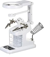 LEDライト支援ハンズ拡大鏡ステーション-FEITA 3X / 4.5X / 25X USBライト付きハンズフリー虫眼鏡スタンド、鉄製ホルダーとワニ口クリップ付き-はんだ付け、アセンブリ、趣味、工芸用