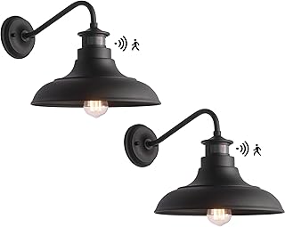 Untrammelife グースネック 壁取り付け用燭台ライト 2個セット マットブラック 農家 屋外壁ライト 夕暮れから夜明けまでモーションセンサー 家デッキ ポーチテラス 10.5インチ x 12.25インチ