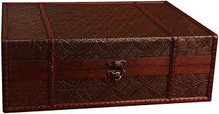 HERCHR ヴィンテージジュエリーボックス 木製宝箱 記念品ボックス 装飾木製収納ボックス ギフトボックス ホームデコレーション 9.1 x 6.3 x 3.9インチ (蓮)