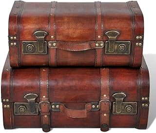 木製ストレージトランク 2個 ビンテージ レトロ 木製宝箱 ストラップ付き 衣類ストレージボックス オーガナイザー 装飾フットロッカー 寝室やリビングルーム用