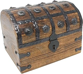 木製宝箱 収納用ジュエリーボックス(5.45 x 4.1 x 2.5インチ)