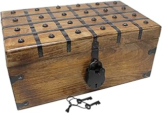 Nautical Cove 宝箱 木製ボックス アンティークアイアンロックとスケルトンキー付き – 収納と装飾(XL 17 x 10 x 7.5)