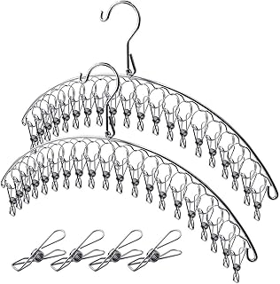 Achy JP 2本セット ピンチハンガー 物干しハンガー 空間を節約 滑り止め 防風 速乾 縦20ピンチ ステンレス 錆防止 ハンガー 靴下/下着/タオル/ブラジャー/ネクタイなどの小物対応 (シルバー)