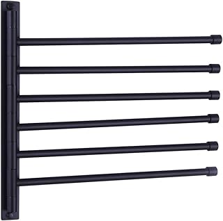 GERZWY バスルームスイングアームタオルバー 壁マウントバスタオルラック 6アームハンガータオルホルダーオーガナイザー SUS 304 ステンレススチール マットブラック HYG06-BK