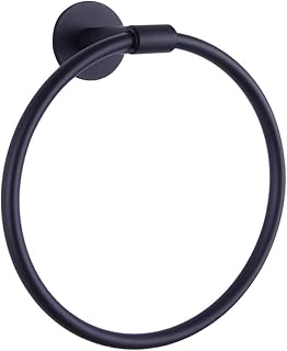 GERZWY バスルームハードウェアセット 2ピース ブラックタオルリングとタオルバー SUS 304 ステンレススチール 壁取り付け マットブラック