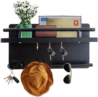 Cedilis 木製コートラック 2個パック 14フック壁コーヒーマグラック 壁掛けヴィンテージアコーディオンペグハンガー 帽子 野球キャップ マグカップ コート スカーフ バッグ ウォールナットカラー