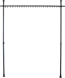 山善 突っ張り ポールハンガー 全体耐荷重30kg 高さ190-260cm ワンタッチで設置 落ちにくいフック 組立かんたん コートハンガー 玄関収納 一人暮らし 子供部屋 マットブラック WJ-725RM(MBK) シングル