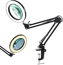 KiiKaa LEDルーペデスクライト 拡大鏡テーブルランプ クリップ付き 卓上ライト 5倍の倍率拡大鏡を搭載 折りたたみ式 角度調整可能 無段階調光 3種色温度 USB給電 目に優しい 多用途 (ブラック)