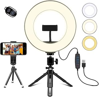 LEDリングライト Creatck 外径8in 撮影照明用ライト 3色モード 卓上ライト USBライト スマホスタンド付き 10段階調光 Bluetoothリモコン付き 補光 Youtubeビデオ/美容化粧/自撮り撮影